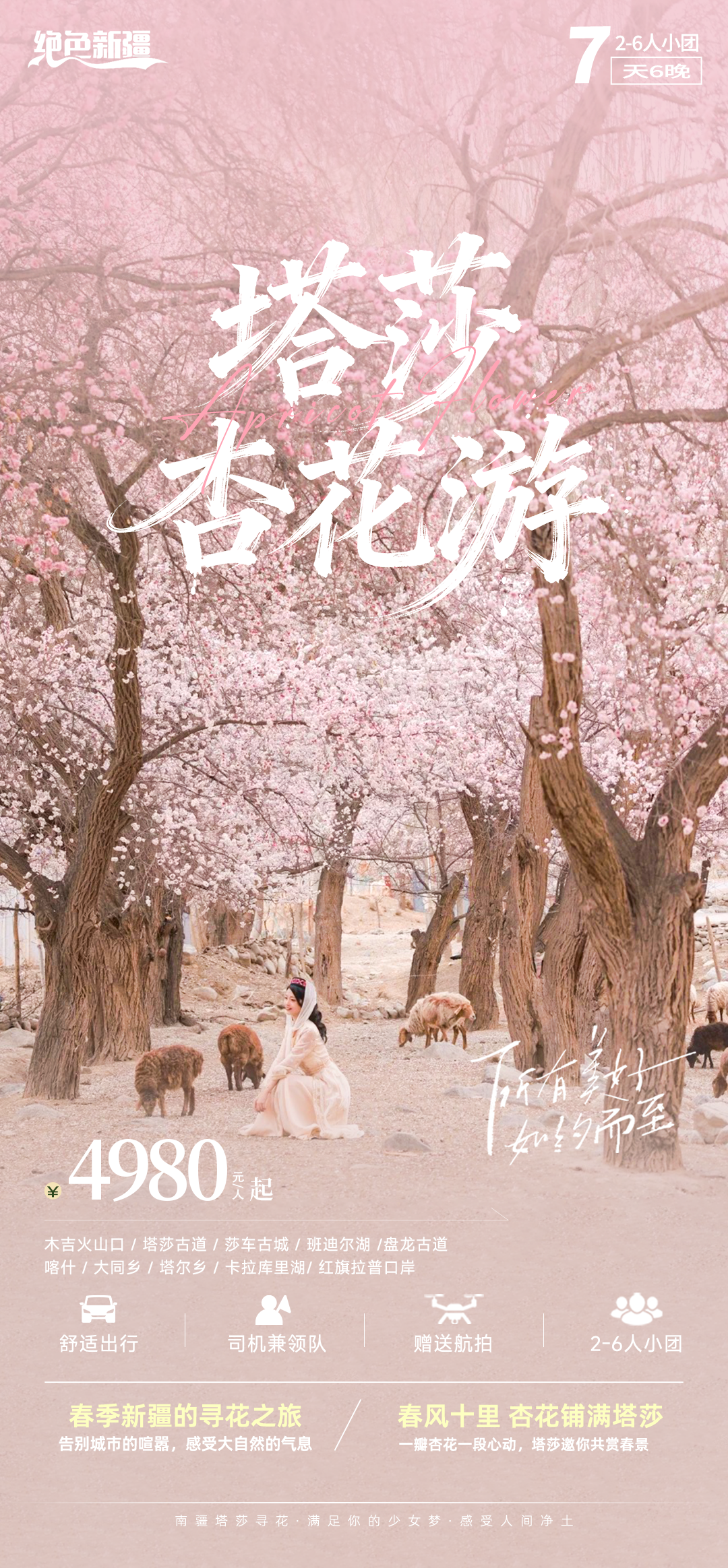 温馨提示:每年杏花花期受气温影响波动较大,我们无法保证哪一期花较好,排期均参考以往花期集中的时间发团,拍摄过程中,在时间、条件允许的情况下,适当调整拍摄时间和顺序,尽量不留遗憾。