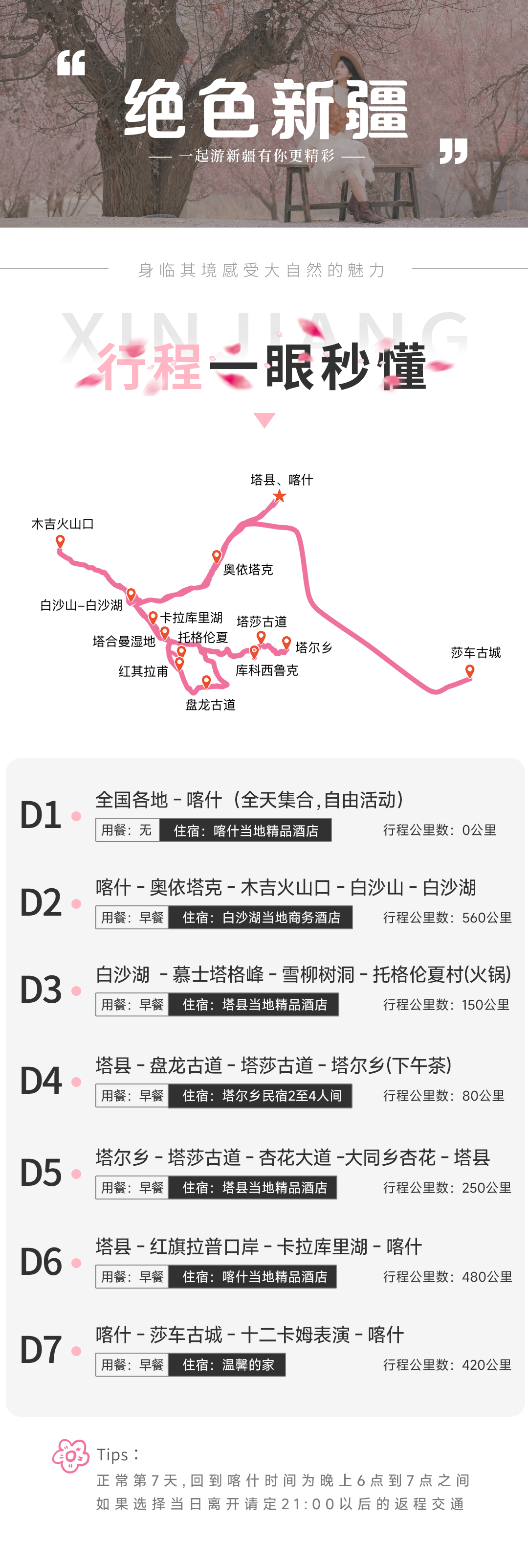 :塔尔乡日出→塔莎古道→杏花大道→大同乡杏花→塔县