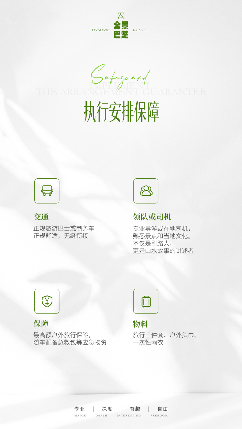 保险:最高额度50万旅游意外险;(中国银保监会规定:不满10周岁儿童保额降至20万,10-18周岁额度降至50万,70-75周岁保额为40万,76-85周岁保额为20万;且保险不含财产险;)