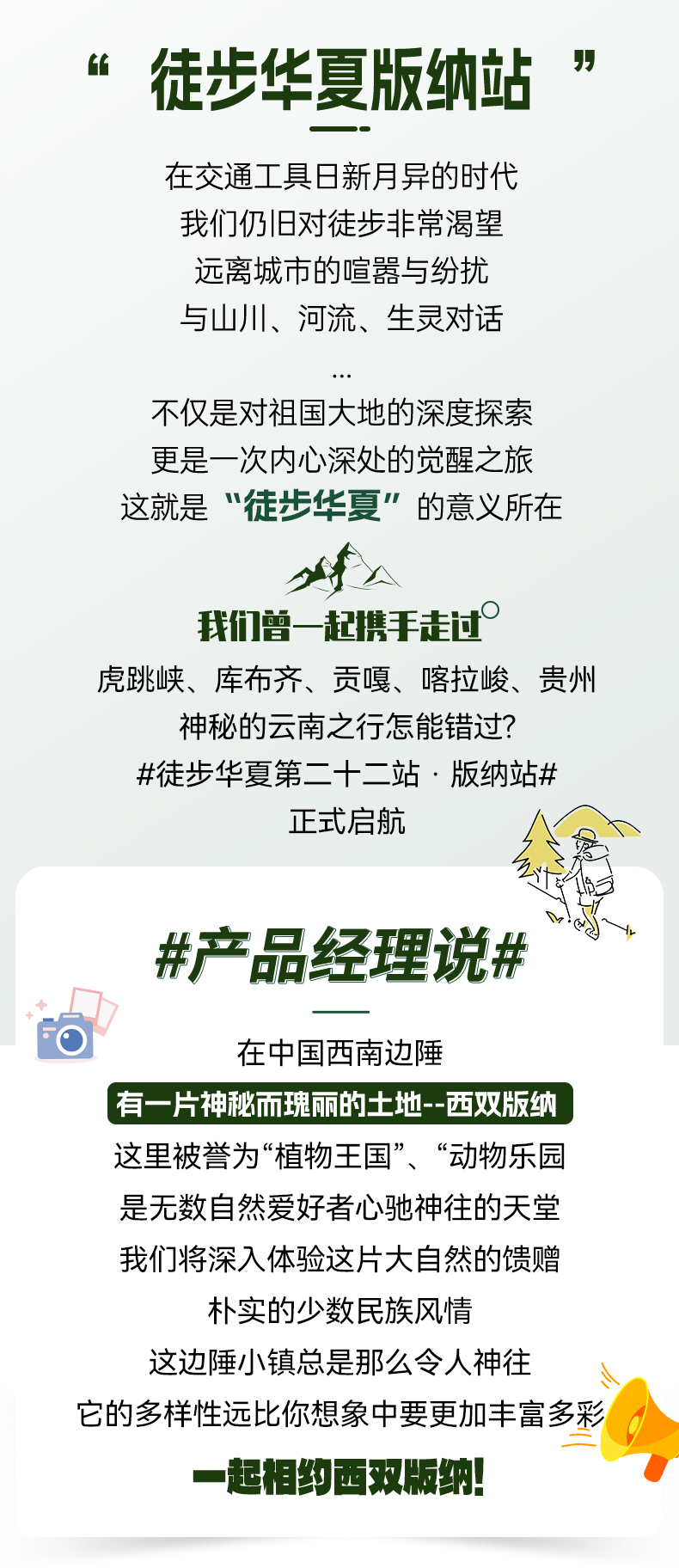 全国各地请根据动车、飞机时刻抵达版纳,自行到达酒店,报【徒步华夏+姓名】,登记入住。