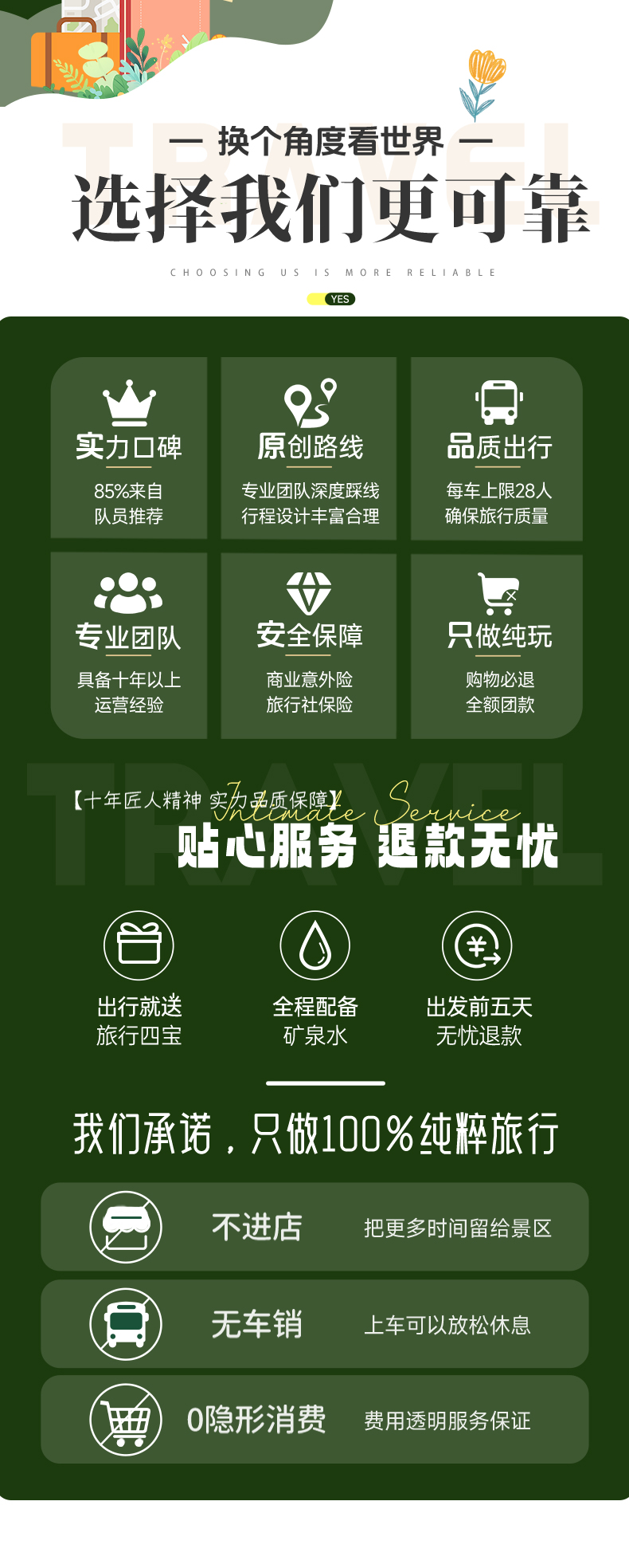 ● 在活动行程中,景区、餐厅、休息区等地存在非本公司安排的购物场所,本公司提醒您,理性消费并索要凭证,如产生消费争议,将由您与售卖商品的商家自行解决。