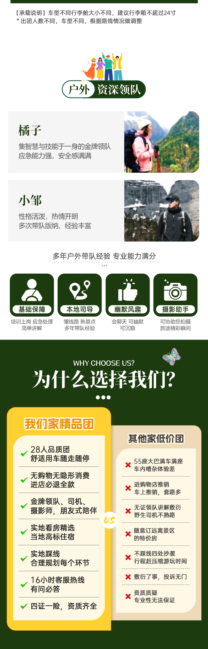 ● 活动介绍页展示的导游领队,可能并非最终实际带队领队,本公司有权根据活动安排等实际情况进行调整,游客报名即表示知晓并理解本情况。