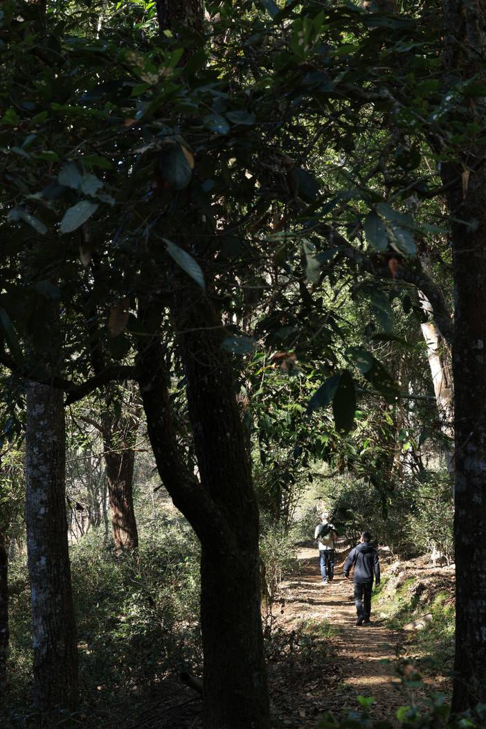 晨光破晓,在翻涌的云海之上迎接第一缕金光,这是景迈山赠与的壮丽序章。 当朝阳为无边的云毯染上金红,我们便踏着晨露,步入万亩古茶林的深处。徒步于苍劲的千年古茶树之间,呼吸着浸润茶香的空气,仿佛每一步都在与历史对话,触摸着这片土地绵延千年的生命脉搏。