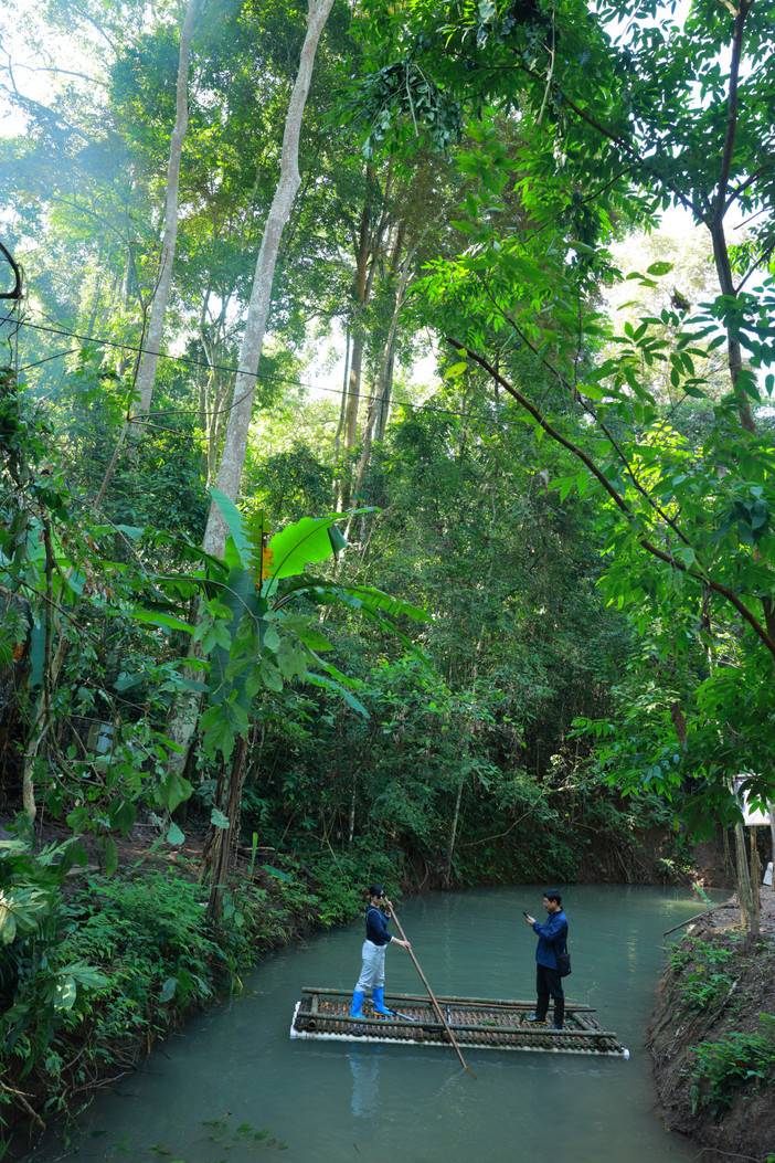 午餐我们将在原始森林内,体验一次别具一格的雨林宴(包含)。在热带地区,有一种特别的餐食叫—绿叶宴。沿袭当地丛林先民曾经在丛林用餐的简易且环保的方式,用芭蕉叶等绿色的叶子包裹食物。继续探索雨林,行走在雨林之中,一切都显得无比奇妙,还可以体验【射箭】,【竹筏】,【丛林大秋千】,【探寻丛林生物】(包含)等等丛林体验活动。今天我们就来一探究竟,亲自去体验这一神奇的雨林。跟着向导穿梭于雨林,这里的树木高大茂密一边走辨认路边的奇妙动植物。这是一堂活生生的户外生物课。