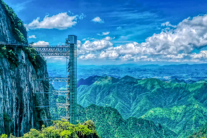 10:30 深度游览五指峰景区,漫步悬空栈道,南中国最长的悬空栈道;总长约8公里,海拔1400米至1600米,两层栈道,全程无障碍观光环线,登高山、临绝壁如履平地,尽享“非人”奇遇。