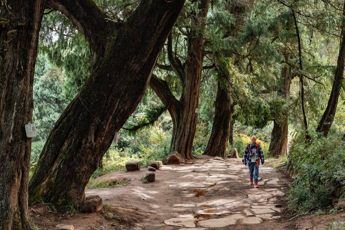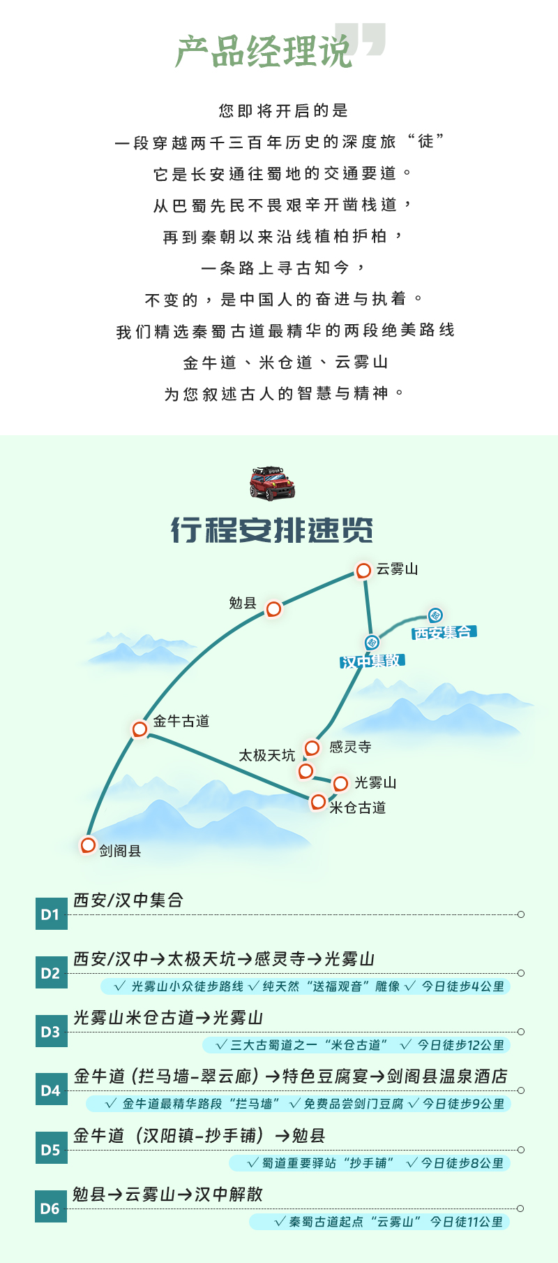 今天我们徒步的是中国古代川陕交通的主动脉-【金牛古道】。这里青石铺道,古柏参天,行走在这里,似乎有些穿越时空的错觉。尤其是最精华的【拦马墙】段,千百年来,由于马匹和行人的踩踏,青石路面上留下了车辙印、马蹄痕和行人足印。沿途还可以看到很多古代陆地交通的实物原形,如“拦马墙”、“饮马槽”、“防滑线”等。