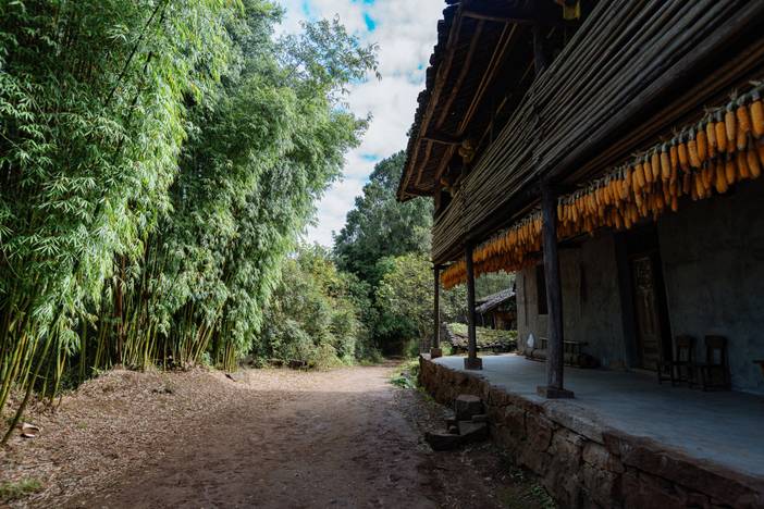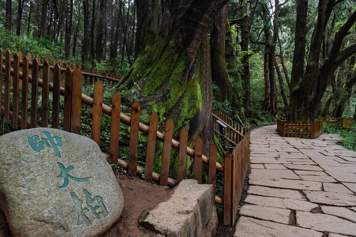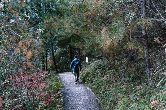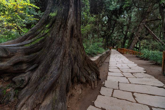 都说光雾山的历史,是一部镌刻在米仓古道上的文明史。与金牛道、荔枝道并称“中国三大古蜀道”的【米仓古道】是中国乃至世界交通史上的活化石。沿着古道慢慢游览,低头找一找青石板上的马蹄印,这是当年盐商牵着马日复一日走过的痕迹。走累了在路边的石凳上休息,指尖抚过历经岁月的石板,红叶飘落在蜿蜒的青石板路上,立刻就能感受到一种幽深的古意,仿佛置身于一幅流动的历史画卷之中。