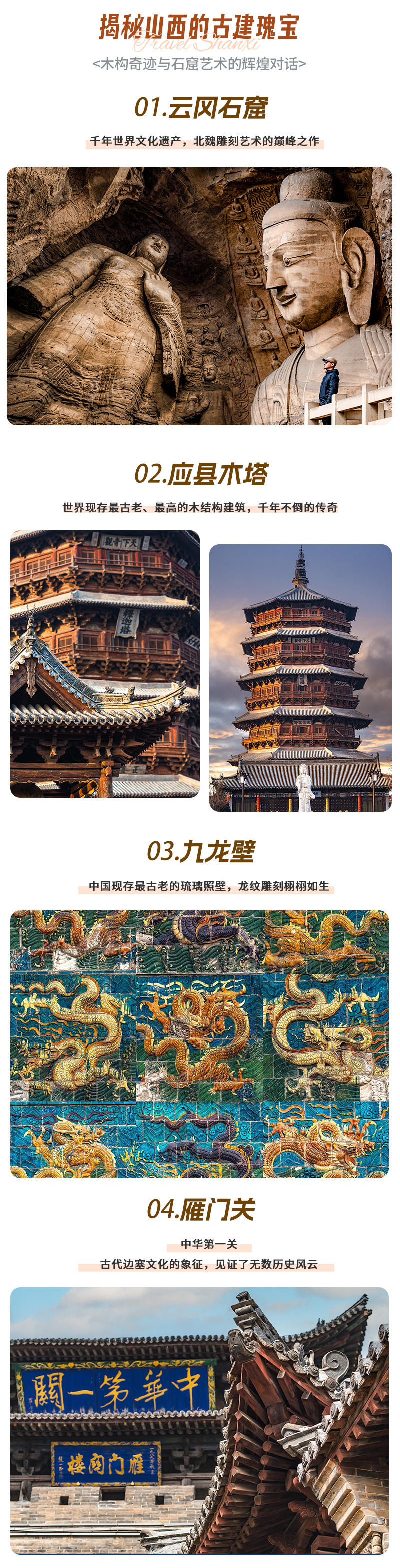 【门票】晋祠门票,双林寺门票,王家大院门票,万年冰洞门票,悬空村门票,雁门关门票含景交,应县木塔门票,云岗石窟门票,华严寺门票,九龙壁门票,恒山景区(悬空寺首道大门票+恒山首道大门票+景交车),五台山首道大门票;