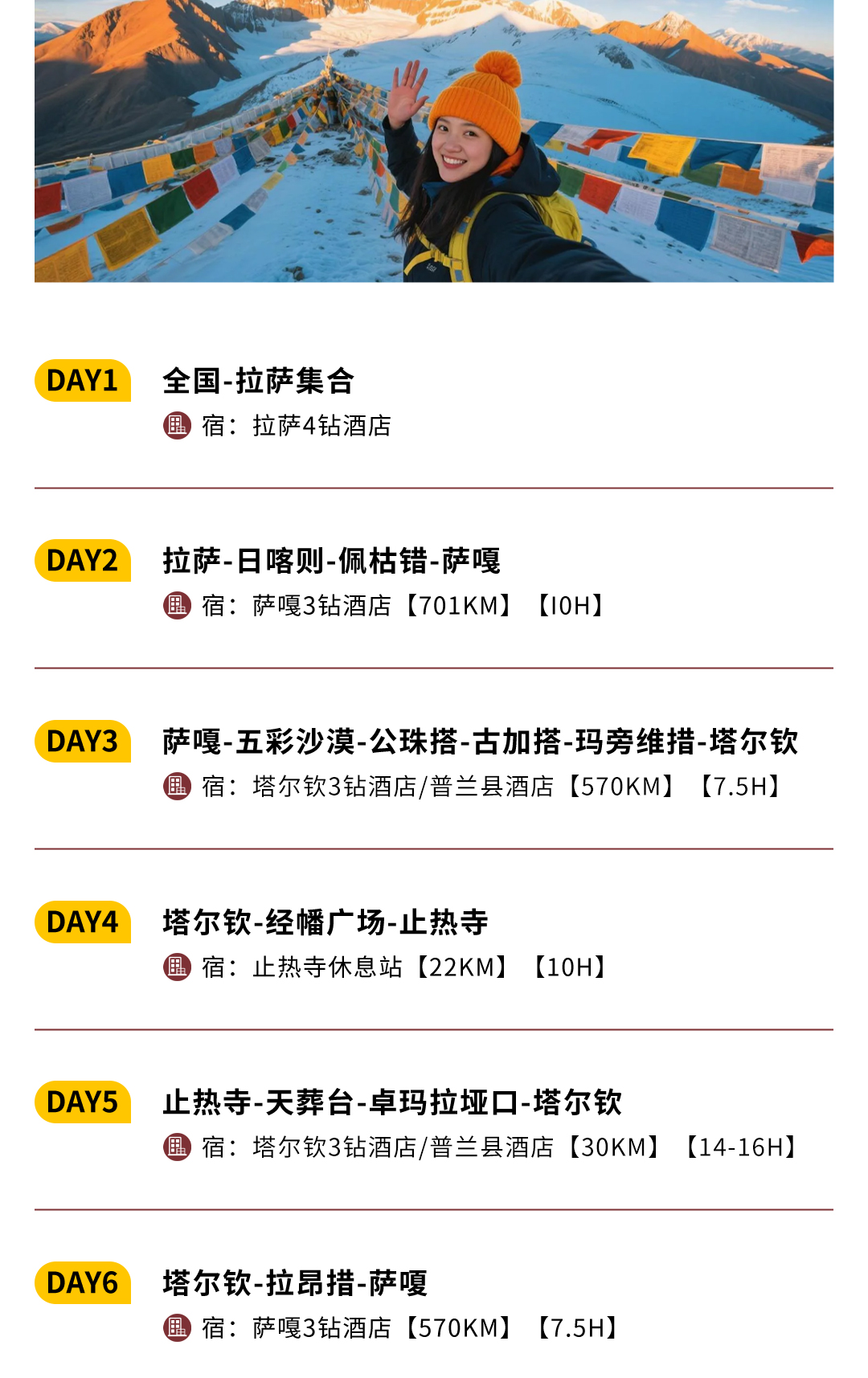 2.全程正餐,第七天赠送布达拉宫观景餐厅庆功宴(不用不退)