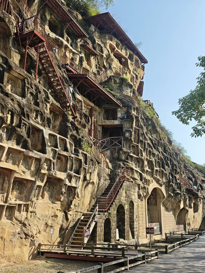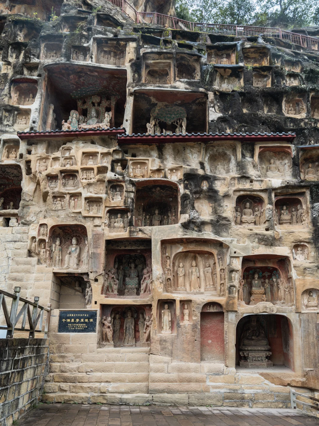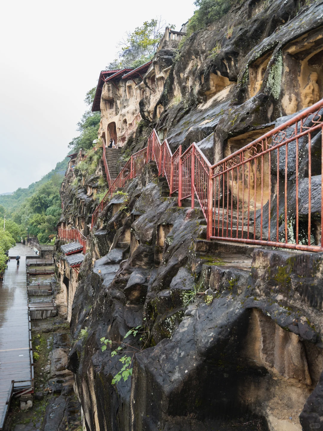 早餐后出发前往【明月峡古道】,嘉陵江西陵峡东段便是明月峡,峡谷形如一钩弯月,夜晚过峡,月悬西山,江月辉映,蔚为壮观,故而得名。这里还保留着一段先秦时期开凿的古栈道,这就是蜀国历史上著名的“金牛道”一部分,这段古道上演出过韩信“明修栈道,暗度陈仓”的故事。走进明月峡,与2300多年的历史撞了个满怀,猝不及防。历朝历代,多少人在这峡谷进进出出、来来往往。【千佛崖】位于嘉陵江东岸,始凿于北魏晚期,历经多个朝代开凿,现存造像7900多尊,在400米悬崖上密密麻麻分布着13层石窟,十分壮观。这也是石窟艺术沿“金牛古道”进入四川后的首个大规模石窟群,非常值得一看。