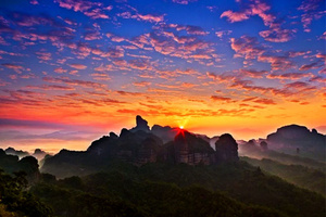 丹霞山( 中国红石公园),位于广东韶关市仁化县境内,是世界“丹霞地貌”命名地。由680多座顶平、身陡、麓缓的红色砂砾岩石构成,“色如渥丹,灿若明霞”,以赤壁丹崖为特色。