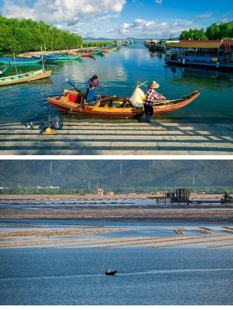15:30 前往白沙村红树林湿地公园,可以在码头坐当地村民的渔船出海放网捕鱼(自费),可滩涂上捉螃蟹、可到白鹭亭观看白鹭归林、拍摄红树林里的白鹭,以及守候极美晚霞日落。