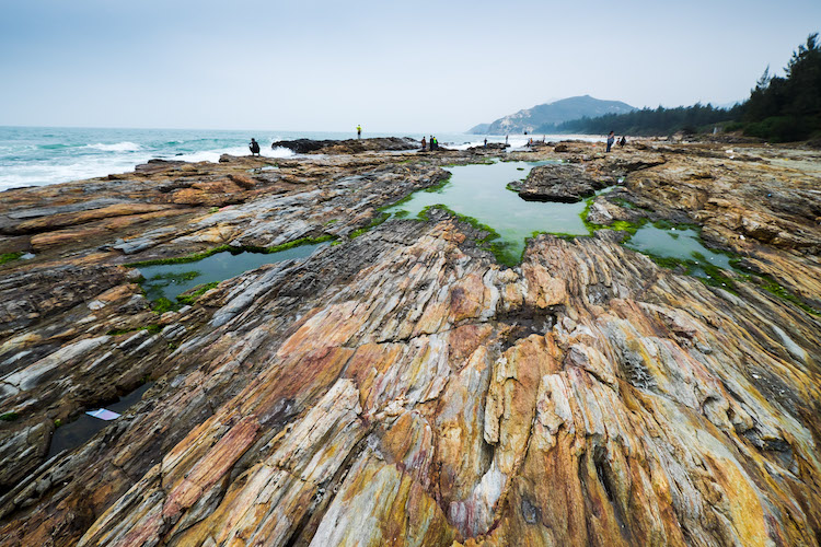 12:30 午餐后前往彩石滩游玩拍照,下车后,沿洁净的沙滩步行10几分钟,即可到达这片具极特色的礁石滩,在这拍大片、赶海(赠送赶海工具免费使用)。