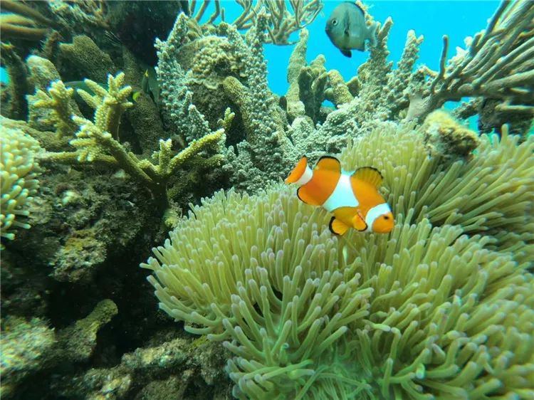 2.浮潜需靠近礁石附近才比较多海洋生物,如海胆、小丑鱼、珊瑚礁等。