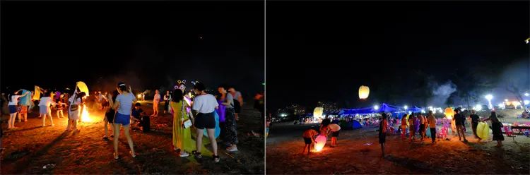 晚上,还可组队预定沙滩烧烤、可在沙滩上放烟花、孔明灯许愿、仙女棒拍照~~