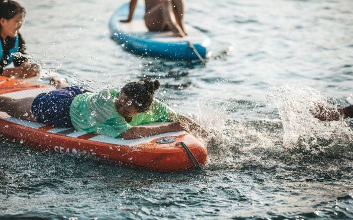 4.划桨板时不可靠近礁石,以免被礁石刮破板体。