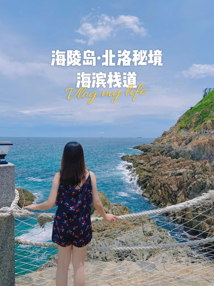 悬崖观海,眺望远方蓝蓝的大海,俯视山脚下的银白色沙滩,简直心旷神怡