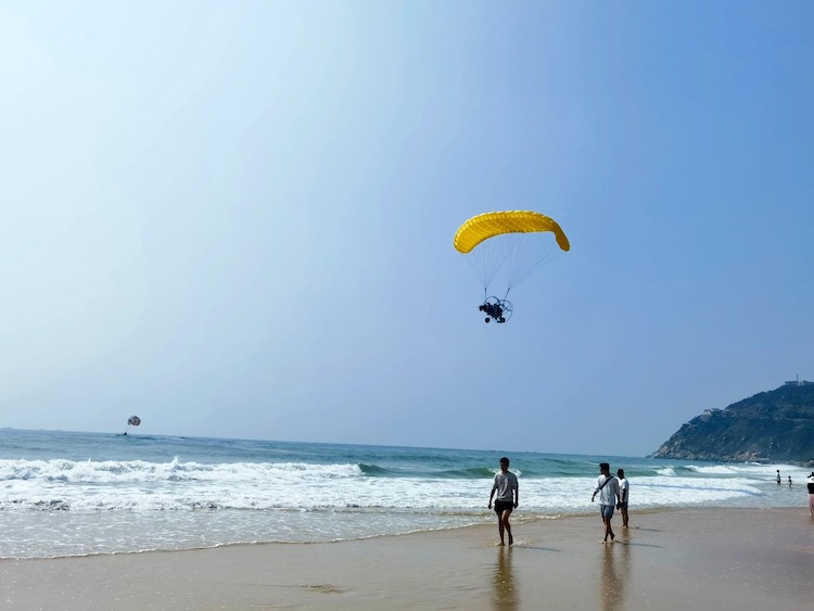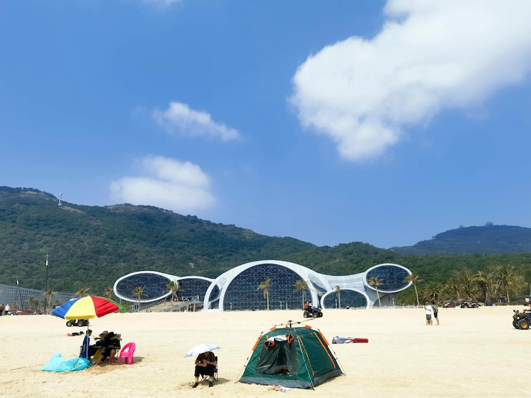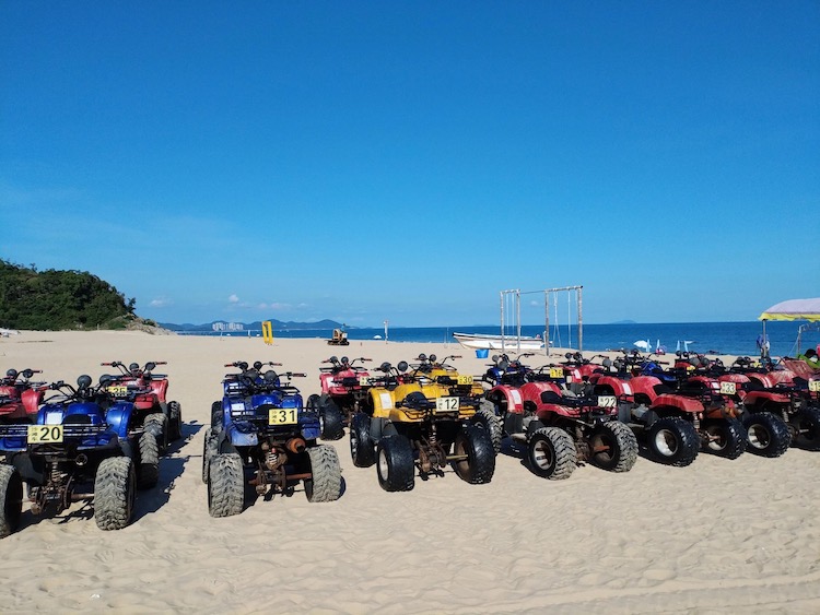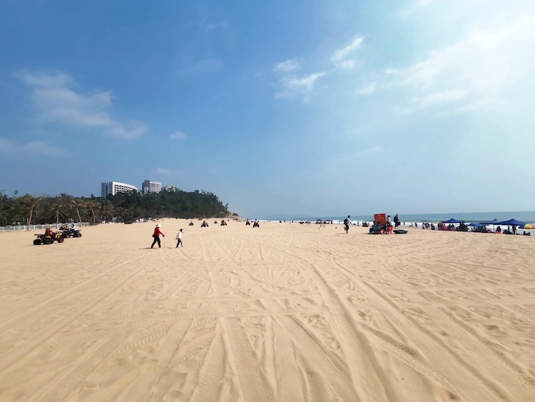 这里沙滩呈东西走向,绵延约2.5公里,沙质细腻,游玩项目多,非常适合在这玩耍。
