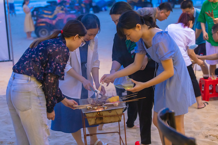 17:30 前往旁边的沙滩开展【烧烤活动】,领队会让商家提前备好食材与炉具。队友们分组,10人一组,齐齐动手,制作烧烤晚餐,面对大海,夕阳西下,直到入夜,迎着海风,放起烟花,唱着歌谣,喝着啤酒~~这才是海边该有的浪漫。
