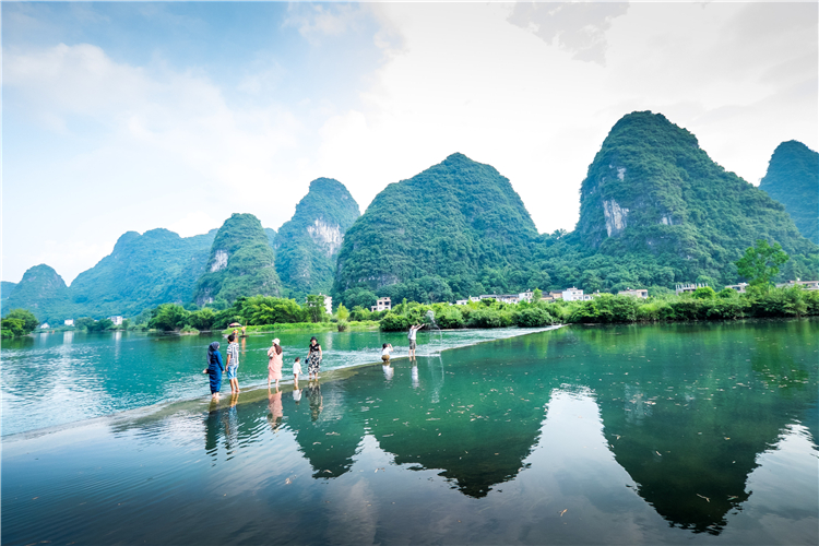可以在漓江边玩水,拍照,一起来个美美的大合照。
