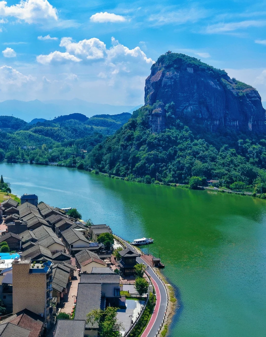 碧绿的翠江蜿蜒其中,山水相依,构成了一幅幅如诗如画的美景 。碧波澜澜飘着仙气的河面、红岩黛峰的丹霞奇景最是大自然的奇作,举步江边栈道,清风拂面,鸟啼虫鸣;乘船环游,看碧水共长天一色!