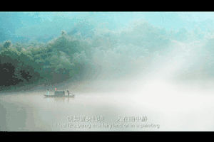 渔翁乘一叶扁舟,自雾中悠悠驶来
