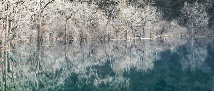翠海、叠瀑、彩林、雪峰、藏情、蓝冰,被誉为九寨沟“六绝”。