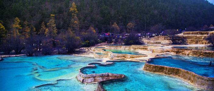 迎宾彩池、飞瀑流辉、金沙铺底地、争艳池、明镜倒影、梭罗映彩、黄龙寺、五彩池等,彩池规模不同,形状各异,有些池水映出各种不同的色彩,五光十色,争奇斗妍;浅滩上水流涌动,阳光照射,波光粼粼,晶莹透亮;水下铺垫着一层细细的浅黄色苔藓,涉足滩流,倍感柔软清凉,此时此地,恍若进入瑶池仙境。黄龙景区海拔较高请量力而行,也可自费乘索道(上行80元,下行40元)赴五彩池,沿途欣赏迎宾池、飞瀑流辉、洗身洞、盆景池等,从黄龙景区出来后集合返回成都,安排住宿,自由活动,好好逛逛成都,自行解决晚餐。
