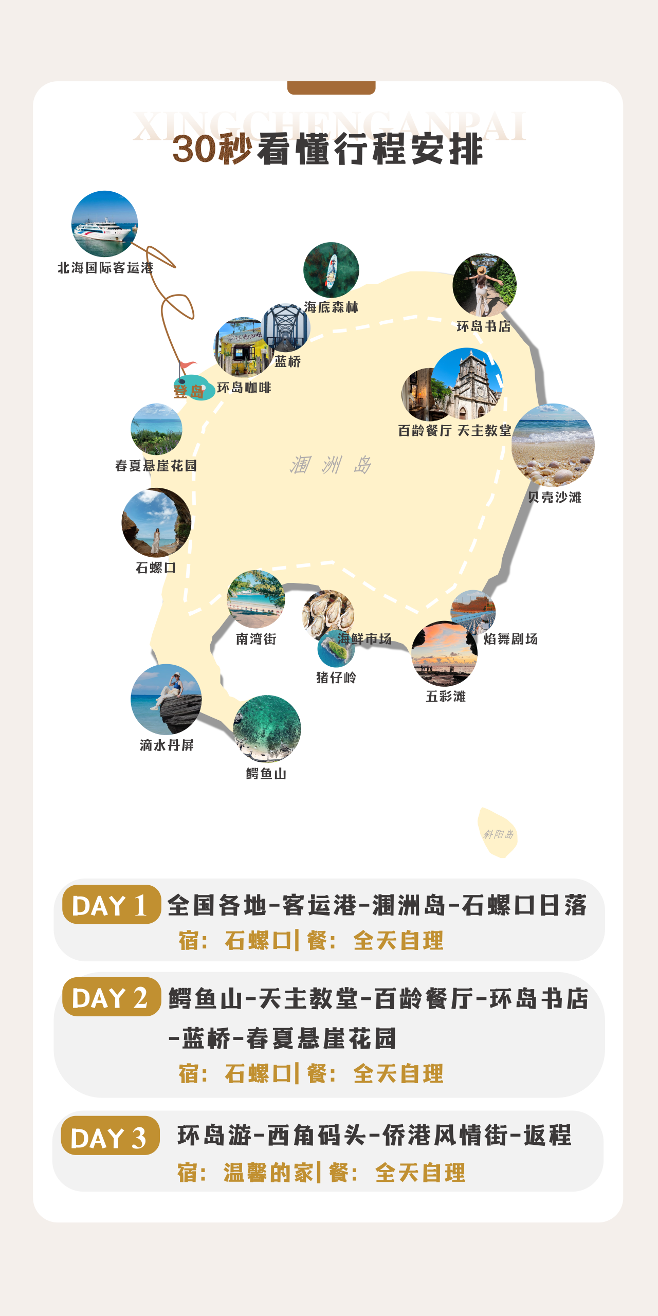 注:报名当地集散套餐可在14:10 前到达北海站或14:30在北海国际客运港码头集合