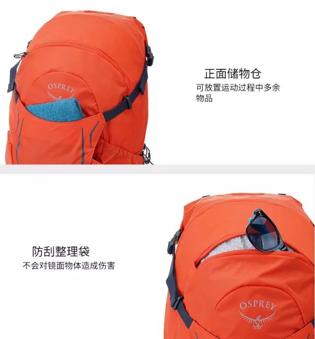 在细节方面同样可圈可点,热压成型的眼睛仓、储物仓、登山杖挂载系统以及最最贴心的背包自带防雨罩。