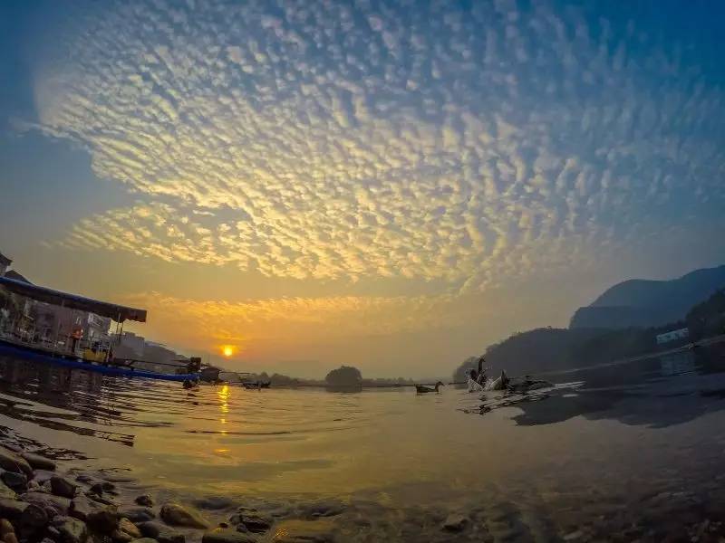 日出很美,可惜我们大部分人没有看到,因为都不够耐心在等待。当天早上东边日出处,由于云层太厚,太阳一直冲不出来,大家都分散开来,去行走古街。最终,还好有小伙伴给我们捕捉到了美丽的一幕。视频,照片,我们都没有错过。