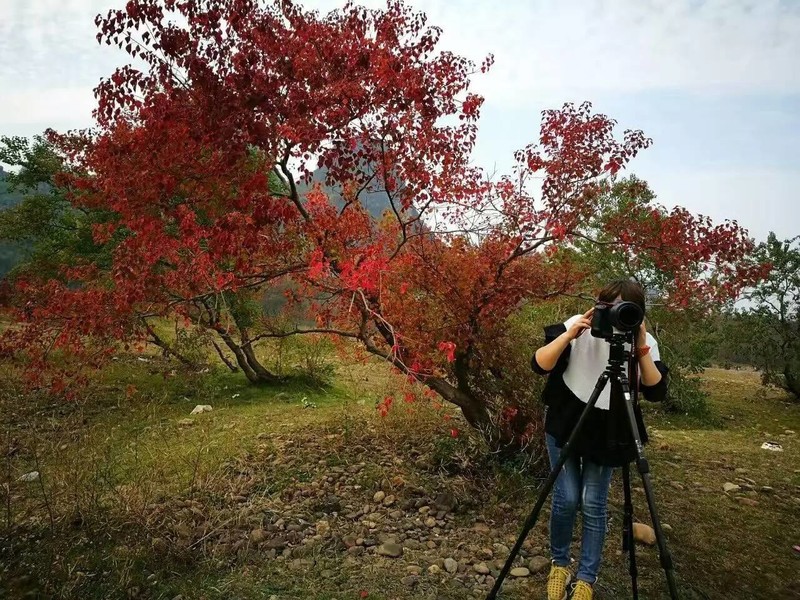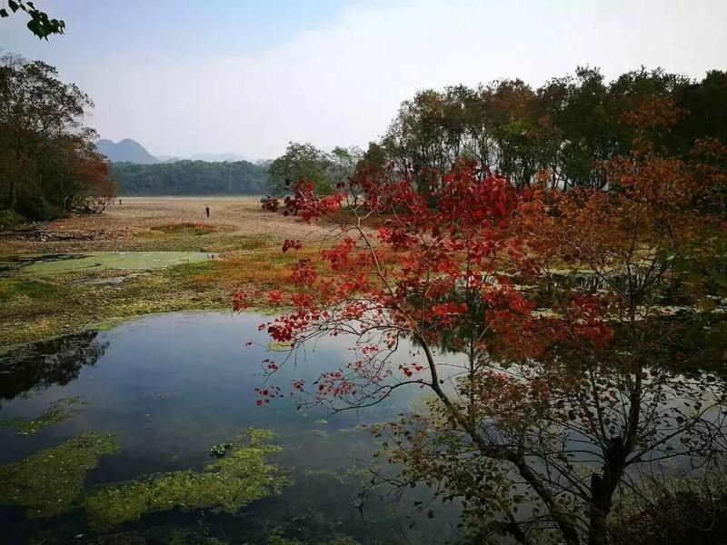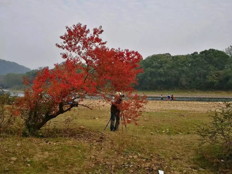 午餐后,我们乘坐大巴前往乌桕滩。领队跟我们是,前一周他已经去了乌桕滩,但是乌桕林的叶子基本没有红。当我们到达目的地的时候,看到一片片红透了的叶子。