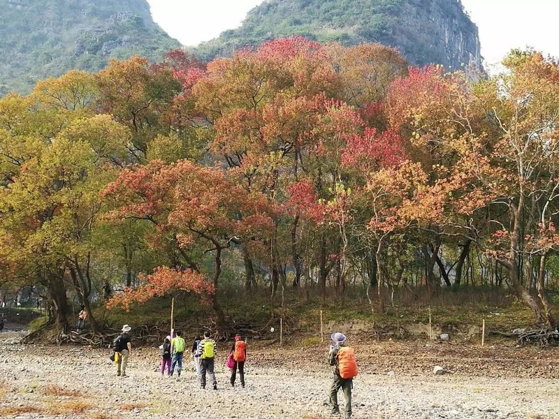 桂林山水甲天下,我们也是见识到了。火红红的乌桕林,衬托在这漓江上,更显珍贵。