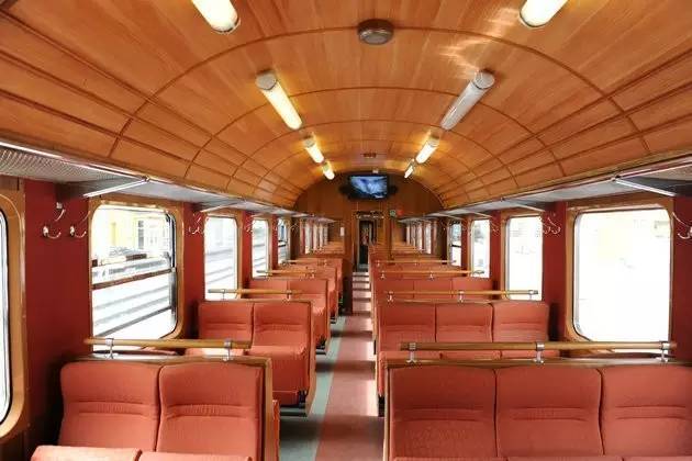 火车会沿着陡峭的山间铁路,穿行于山峦之间,木质的车厢和桔黄色的座位有一种温馨的感觉。