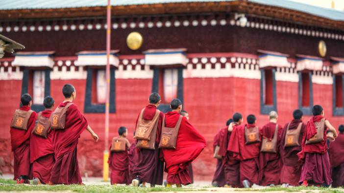早起后出发,去往我们此行的最后一个目的地【拉卜楞寺】,中午时分抵达夏河县。这里随处可见身着深红色僧袍的喇嘛。简单休息后,前往【拉卜楞寺】,拉卜楞寺不仅是世界上最大的喇嘛教学府,也是藏传佛教格鲁派(黄教)六大寺之一。在此,大家可以自由参观游览,幸运的话还可以遇见盛大的辩经场面,非常不错的拍摄题材。这里有着世界上最长的转经长廊,大家不妨跟随当地信众一起走一圈,心怀敬畏,虔诚地拨动每一个转经筒,深深地感受一下他们心无杂念、美好纯粹的信念,为家人和自己祈福。