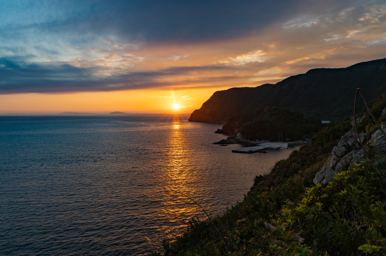 岛屿海面日出