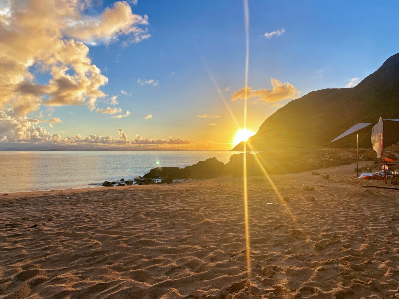在帐篷里听着远处的海浪声进入梦乡