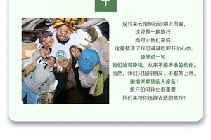 【纪律方面】这不是一个人的旅行,是一个团队的旅行,希望大家能够服从领队的带队工作,注意时间观念 。