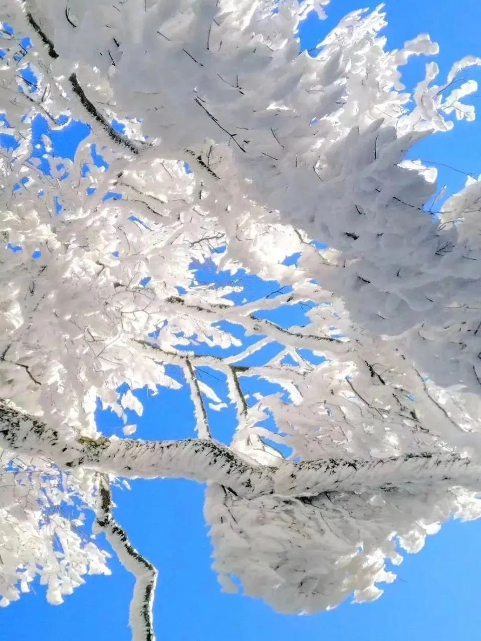 雾凇仿佛变成了一片闪耀的钻石海,