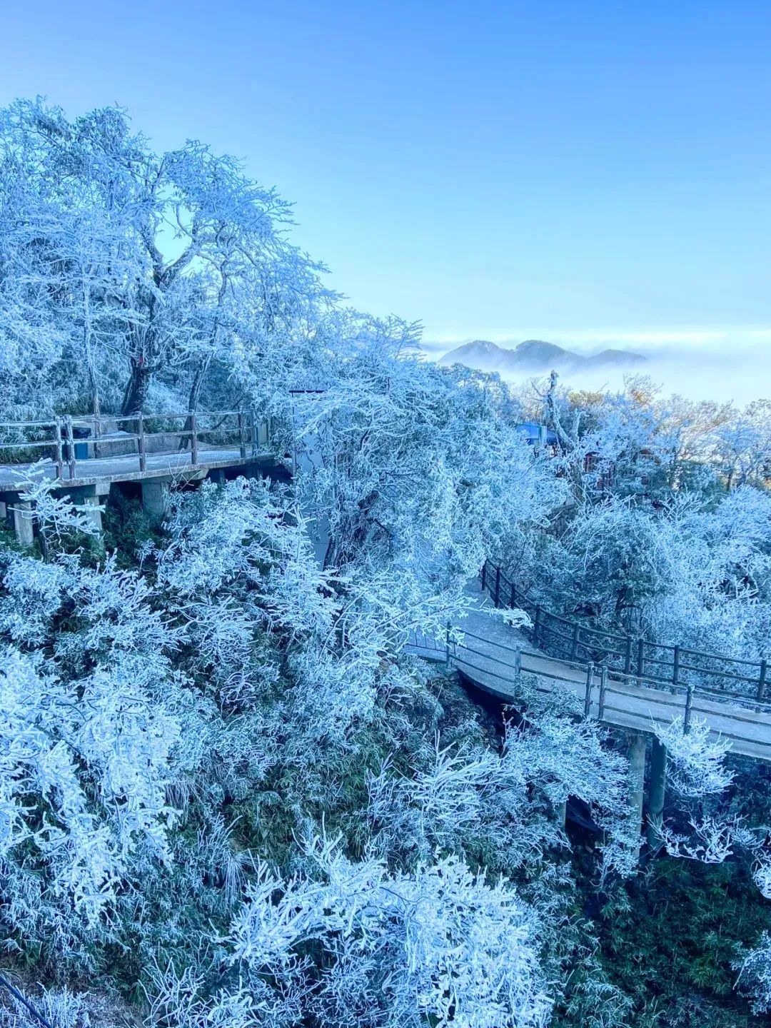 整个莽山都被白色的冰雪覆盖,