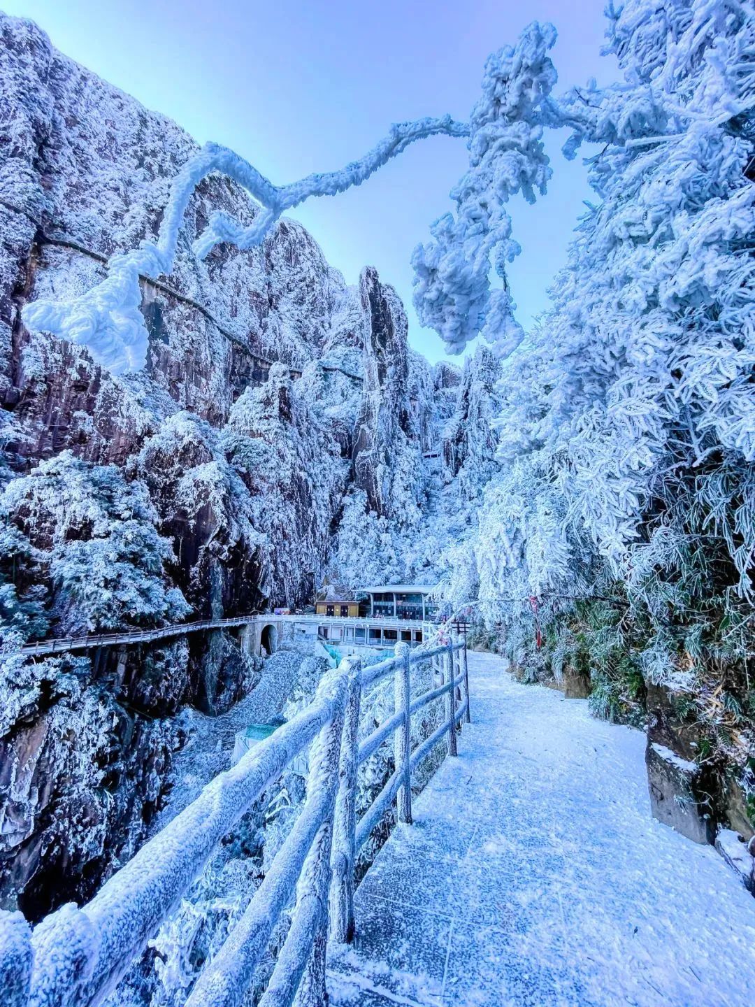 悬空栈道变成一条通往童话世界的时光隧道,