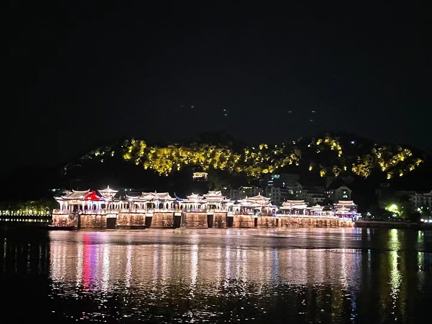 潮州古城灯光秀,韩山映射水波纹、波光粼粼,自然光色与古城风韵结合。诗的意境、画的取景,一江两岸即在画中,又在诗中,俨然有一股水墨乡愁丹青韵味。古城灯光秀是与气势磅礴的潮州音乐紧密结合,绝佳视觉、听觉享受!