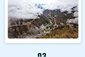 随后前往【贡当神山】,俯瞰【怒江U形湾】,随后下撤,途中特别停留俯看【丙中洛全景】,天气晴好也能观常到高黎贡山高点嘎娃嘎普雪山。