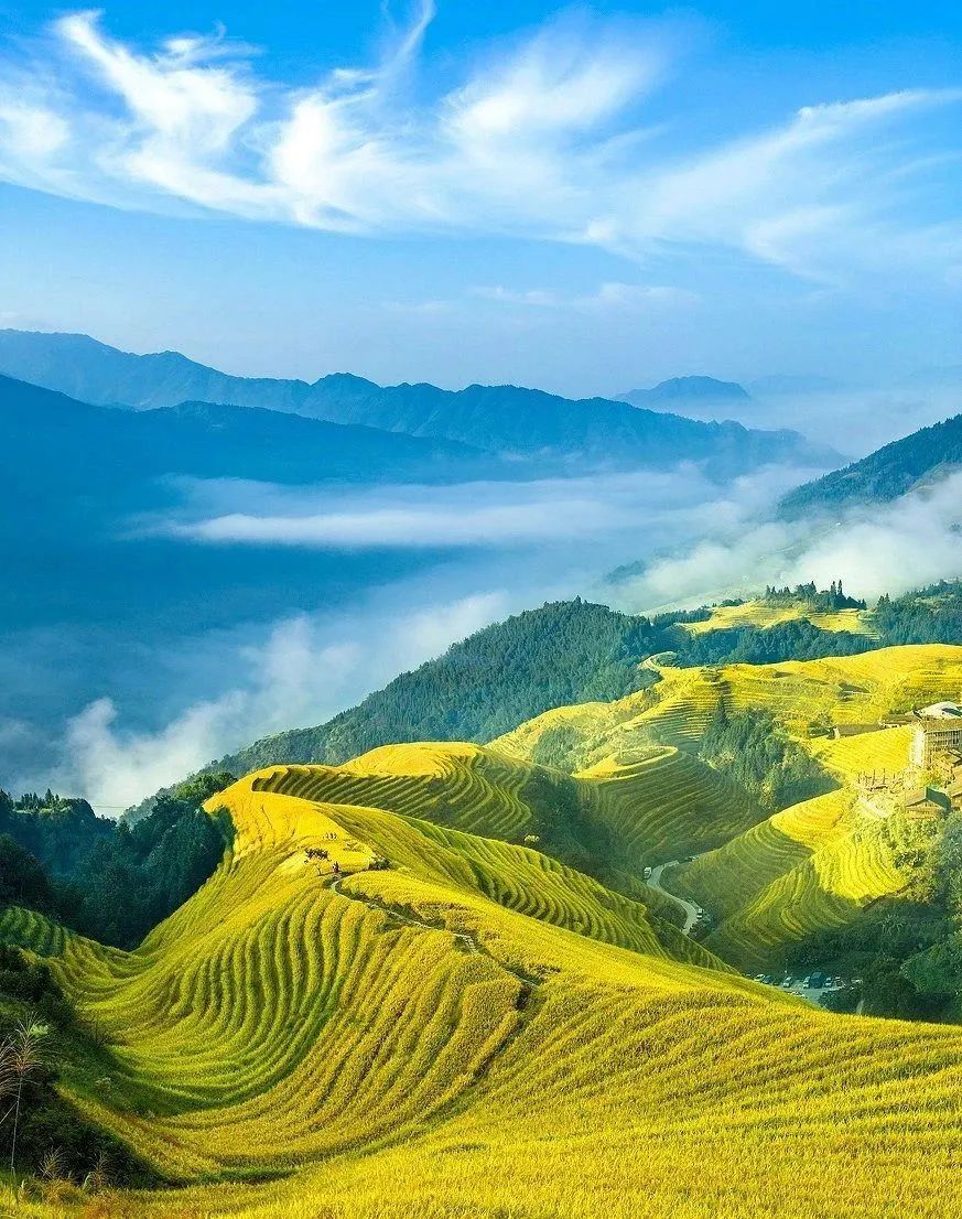 龙脊梯田,世界上最美的梯田群,它集壮丽与秀美为一体,规模宏大,气魄雄浑,为天下梯田之望尘莫及,堪称“世界之最”和“天下一绝”!
