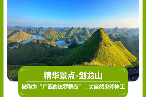 近期风景爆火的剑龙山被网友称为“广西的法罗群岛”这样的山水也只有在广西能看到,奇特的峰林连绵不绝,清澈干净的溪流,空气清新舒服,是徒步的好去处。