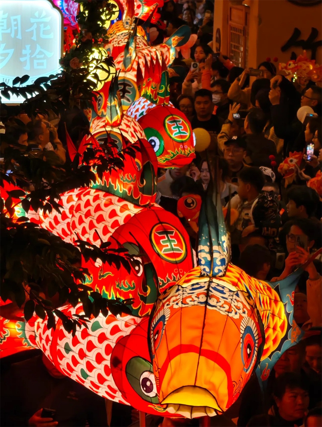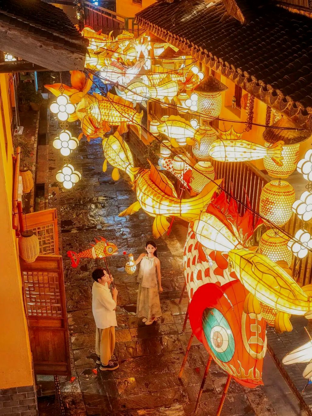 百人齐举鱼灯,瞬间点亮整个古城街巷