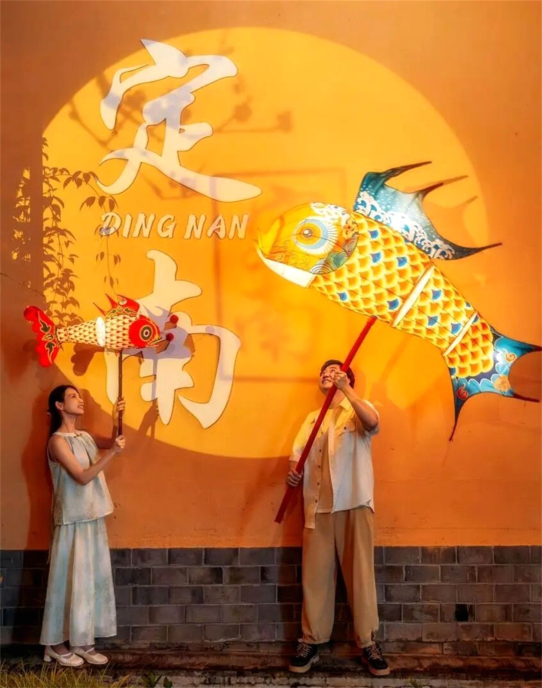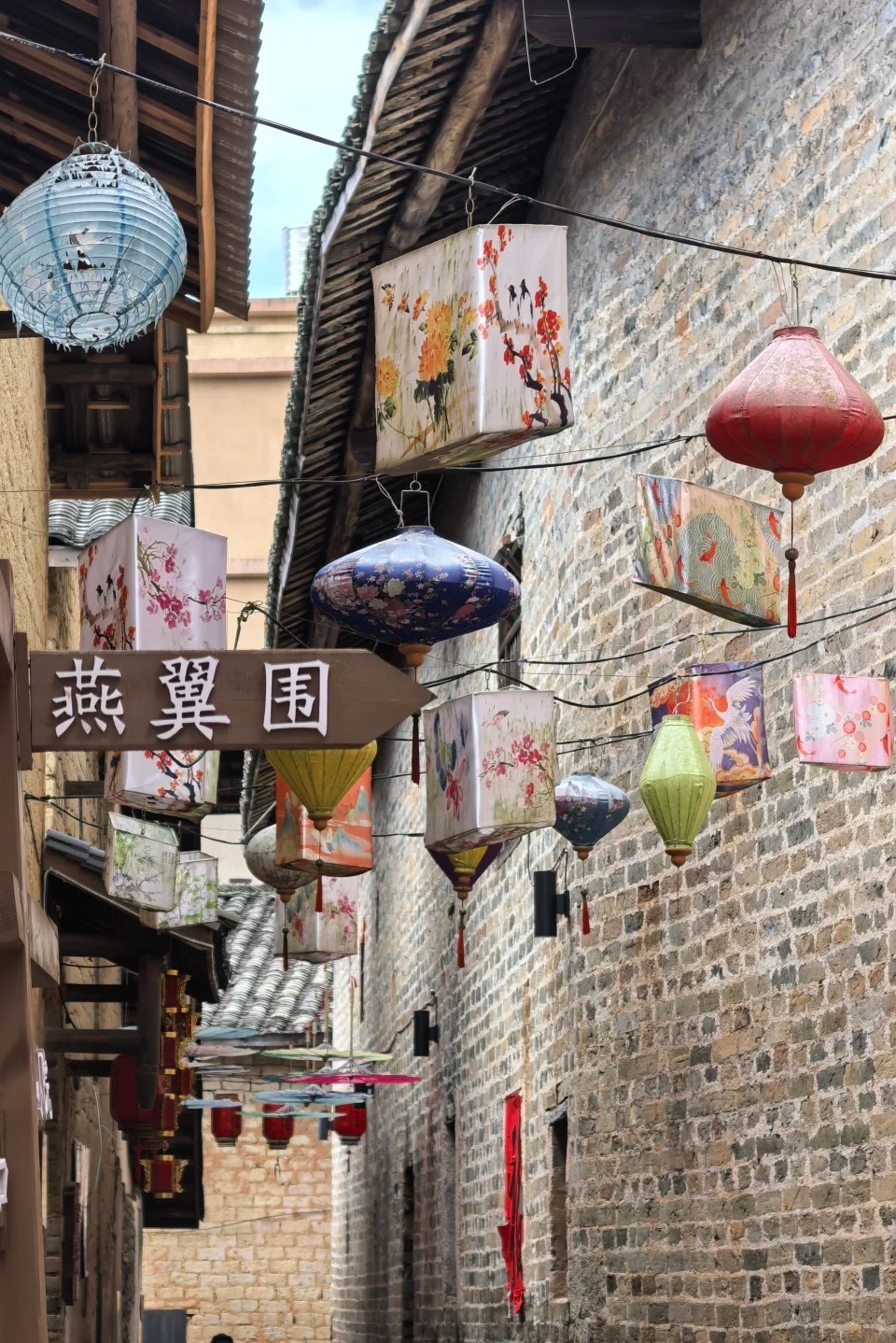 15:30 到达【定南客家古城】,这里是《开推3》的同款综艺场景。千年巷弄、青石秘径、漫画墙,还有随处可见的锦鲤鱼灯。这是一座以鱼灯为IP的古城。亲手制作一盏专属小鱼灯,或挑选心仪的成品鱼灯租下,带着它漫游古城各个角落,与它亲密合影