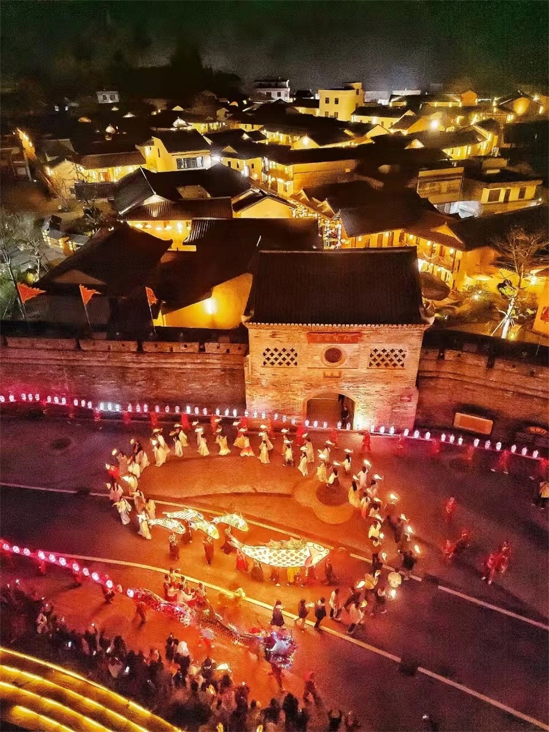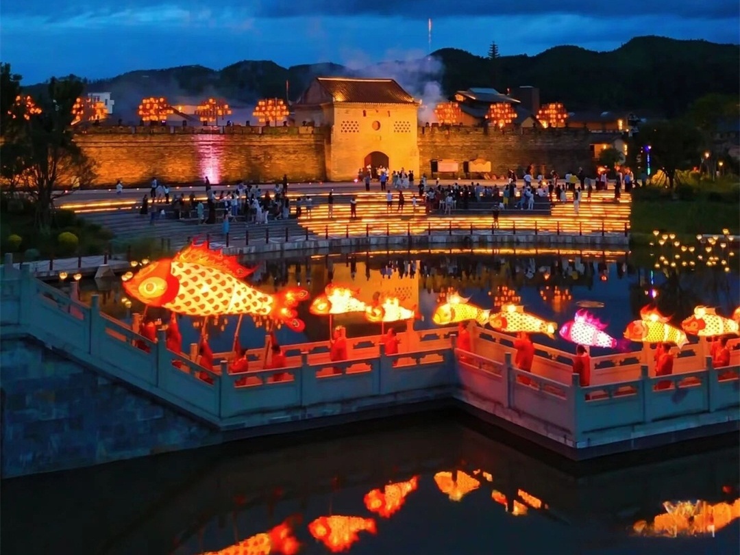 19:30 夜幕降临,鱼灯亮起,跟随领头大鱼灯开启巡游,队伍逐渐壮大,如金龙穿梭在古城之中。这不是一场简单的巡游,而是一场活态非遗盛宴