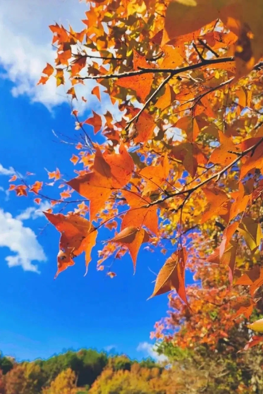 黄绿、金黄、橘黄、火红、紫红,层林尽染
