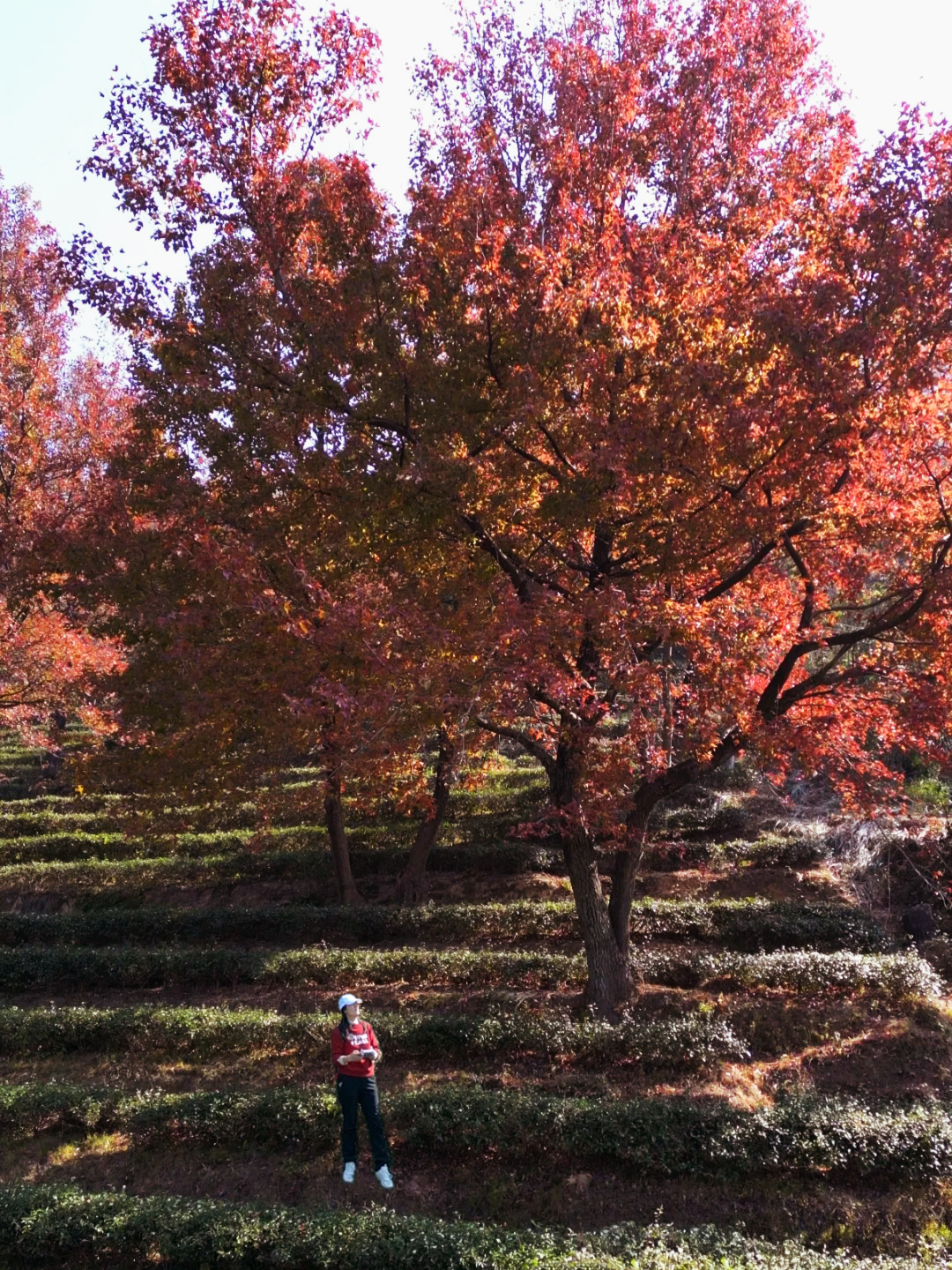 11:00 陆续到达【“无量山”红枫茶园】,上百株枫树点缀在茶园之间,黄绿、金黄、橘黄、火红、紫红,层林尽染,与云南无量山的樱花茶园相媲美。漫步其间,随手成片;或是沏一壶好茶,慵懒地欣赏风景。这里生态原始,没有餐厅饭店,小伙伴记得提前备好干粮哦。也可以帮采茶工人除草,用劳动换工作餐